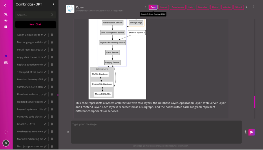 At its core, Cambridge-GPT integrates various AI models, including proprietary GPT variants and open models like Mistral, Llama, and Qwen. This integration creates a rich tapestry of perspectives, mimicking a panel of experts from different fields.