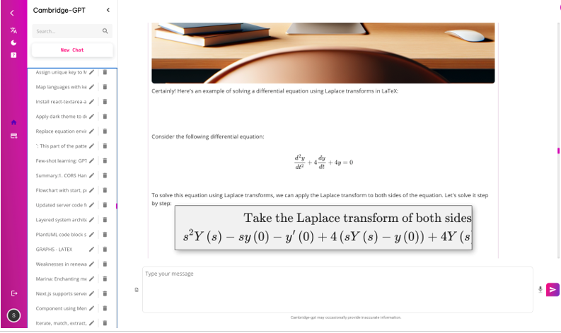 Explore MoreLeveraging image models, Cambridge-GPT enhances textual output with relevant, automatically generated visual content. This feature aids in better comprehension and retention of information, making complex ideas more accessible.
